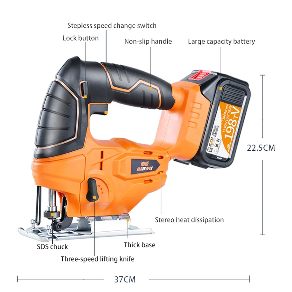 Product Name: 21V Jig Saw, Variable Speed Includes 6pcs Blades, Metal Ruler, Dust Pipe, Allen Wrench Electric Saw Tools